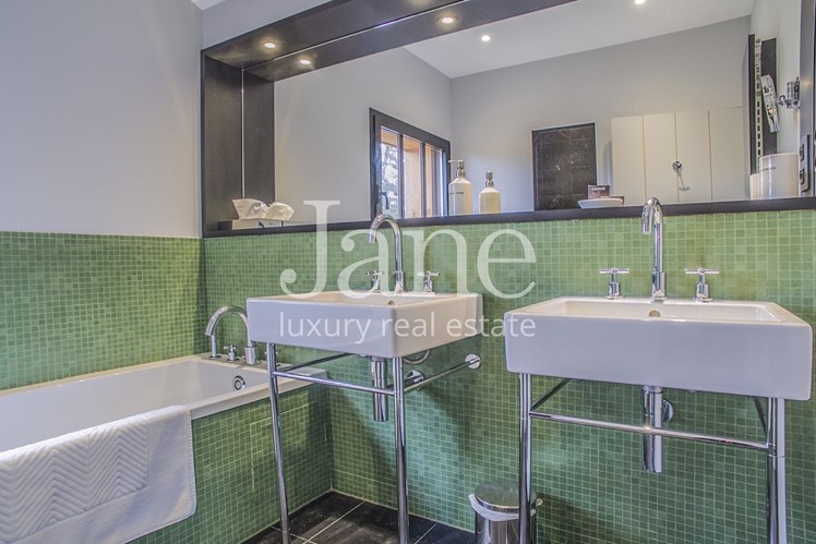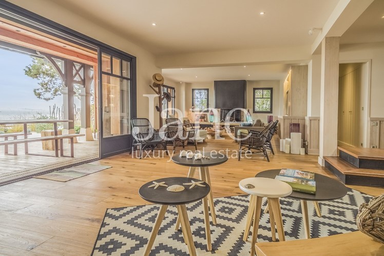 Beachfront. With an area of 450m², it can accommodate up to 15 people, who will appreciate without reserve the cozy and discreet luxury of the place. The 2 floors of terrace, housing a heated outdoor pool, and the landscaped garden of 1500 m² are a call to laziness.