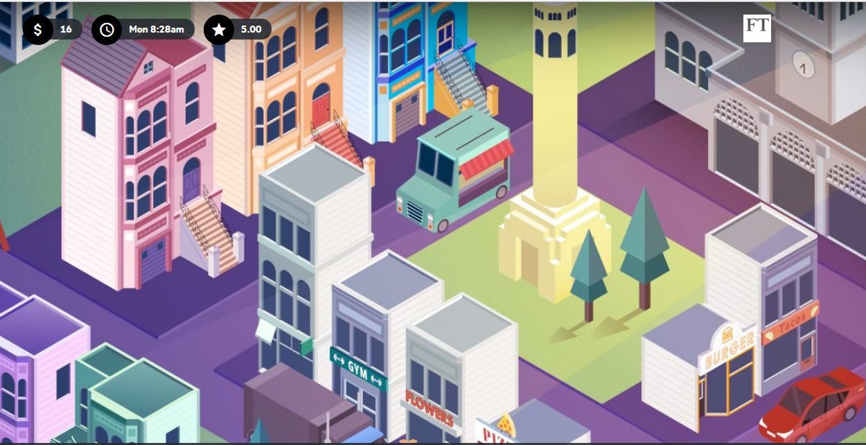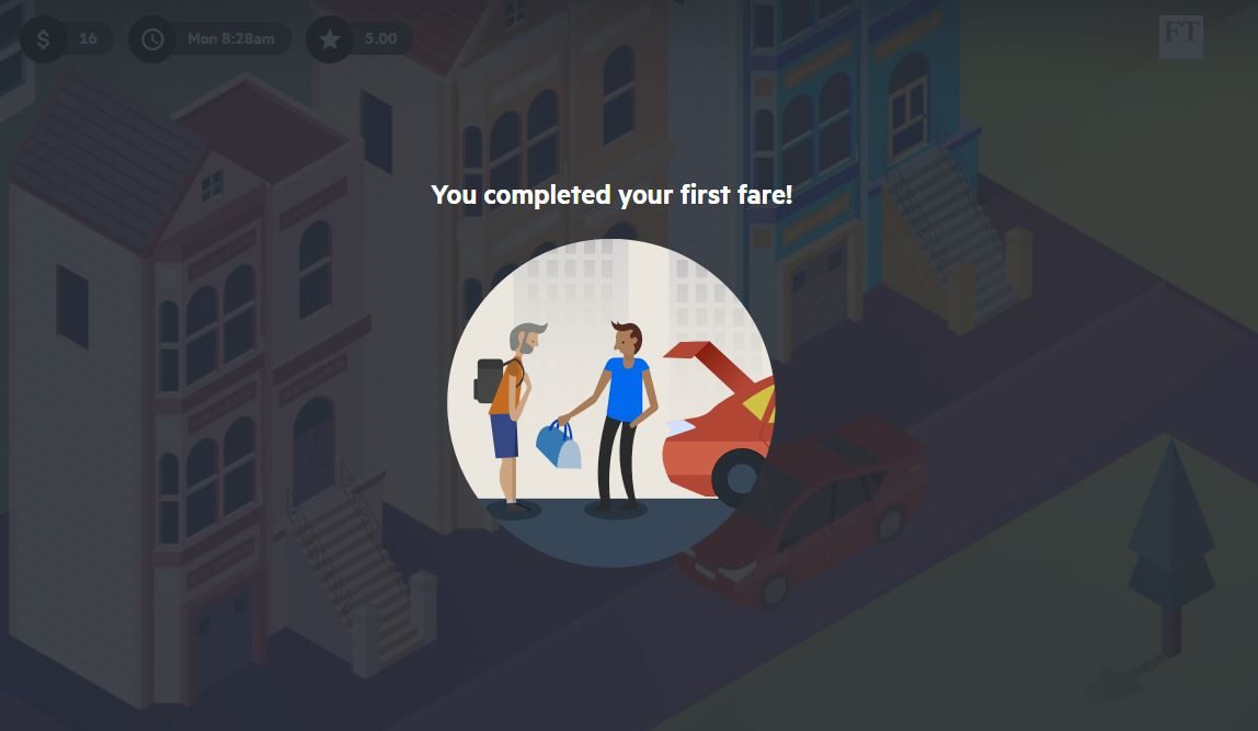 Le dernier « serious game » en vogue a été produit par le Financial Times, The Uber Game, qui vous met dans la peau d’un conducteur de VTC (version Uber). Votre expérience du VTC vous allez la vivre de l’autre côté, les situations ont été concoctées à partir des enquêtes du Financial Times et des témoignages de conducteurs Uber.« Un serious game (de l’anglais serious, « sérieux » et de game, « jeu ») est une application informatique qui combine une intention sérieuse, de type pédagogique, informative, communicationnelle, marketing, idéologique ou d’entraînement avec des ressorts ludiques issus du jeu vidéo ou de la simulation informatique. .